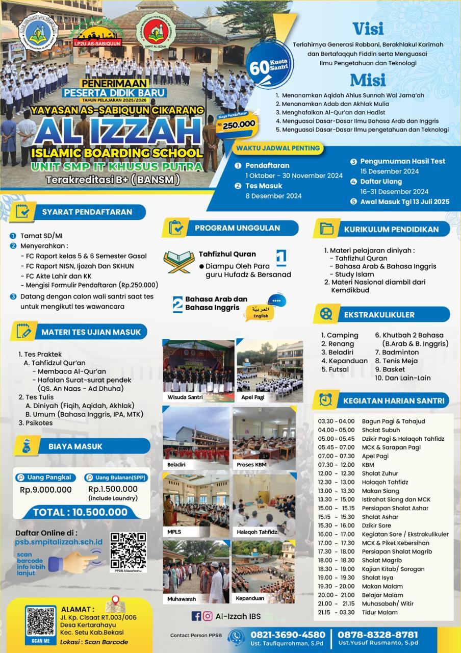 PONDOK PESANTREN AL IZZAH SETU (Khusus Putra) Tahun 2025/2026